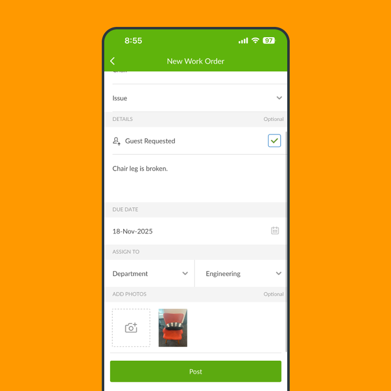 Submit, track, and complete work orders on the go with instant notifications, ensuring timely resolution and minimal disruption to guest services.